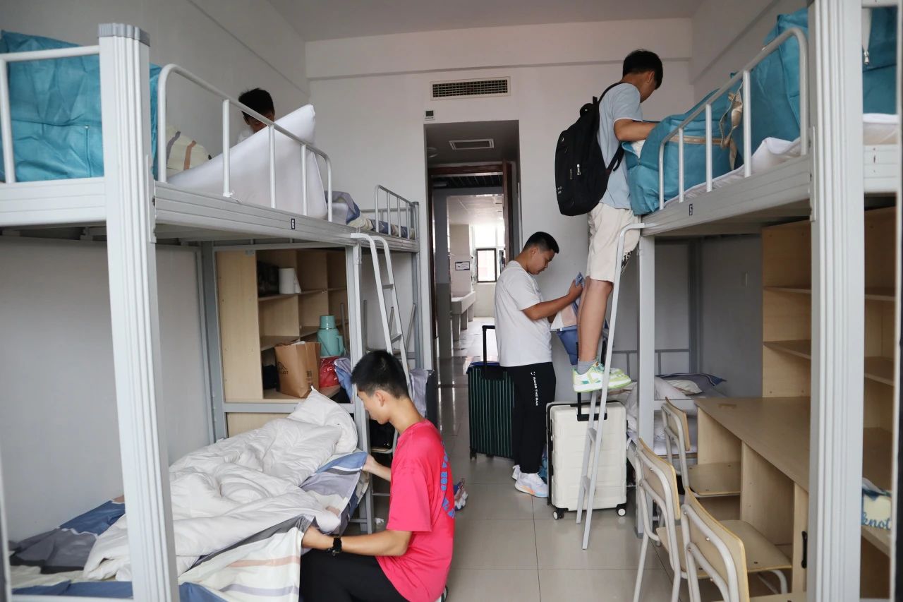 学生公寓上床下桌,一个房间并配有干湿分离的独立卫生间和淋浴室。学校全天候提供热水、自助洗衣房、冷热洁净饮用水,宿舍房间内部宽敞明亮,每个房间均设有中央空调,保证室内温度舒适。此外,宿舍房间还配备了书桌、床铺等学习生活所需的设施,让学生能够在舒适的环境中专注学习。